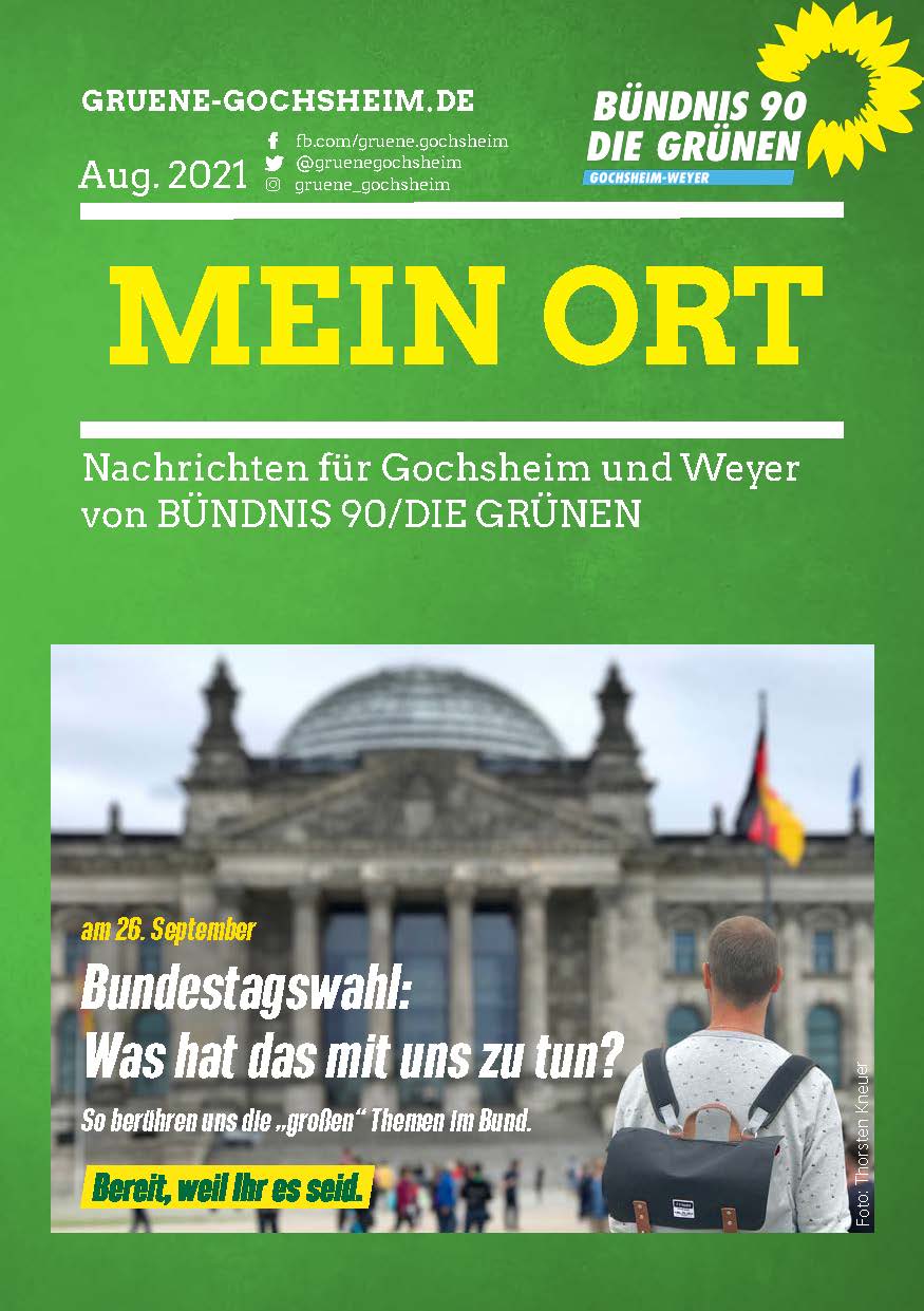 Was haben die Plakate zur Bundestagswahl eigentlich mit uns in Gochsheim und Weyer zu tun? Das haben wir uns gefragt und posten hier nach und nach unsere Gedanken dazu. Alle haben wir in einer neuen Ausgabe unserer Broschüre „mein Ort“ zusammengefasst, die in den nächsten Tagen in Gochsheim und Weyer verteilt wird. Hier können Sie sie als PDF herunterladen: https://gruene-gochsheim.de/downloads/