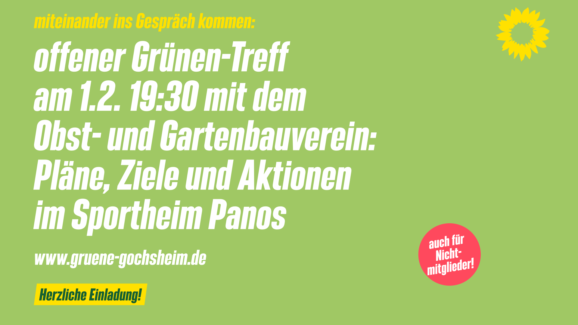 offener Grünen-Treff am 1.2. 19:30 mit dem Obst- und Gartenbauverein